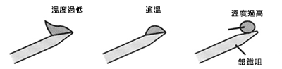 錫是低溫易熔及易老化的焊料,溫度低時(shí),錫呈現(xiàn)膠狀不黏,令線路 板的銅箔與零件腳造成假焊。溫度正確適中時(shí),在焊咀的錫呈半圓粒狀,有反光面,是黏著力最佳的時(shí)候,迅速將零件腳與底板電路焊接。溫度過高時(shí),錫呈圓粒 狀,錫點(diǎn)表面的色澤呈啞色,有縐紋,表示錫已老化,會(huì)造成假焊點(diǎn)出現(xiàn)。所以,從鉻鐵咀的錫粒形狀可知何時(shí)焊接是最好的時(shí)候,制作的成功率是怎樣。新藝圖庫